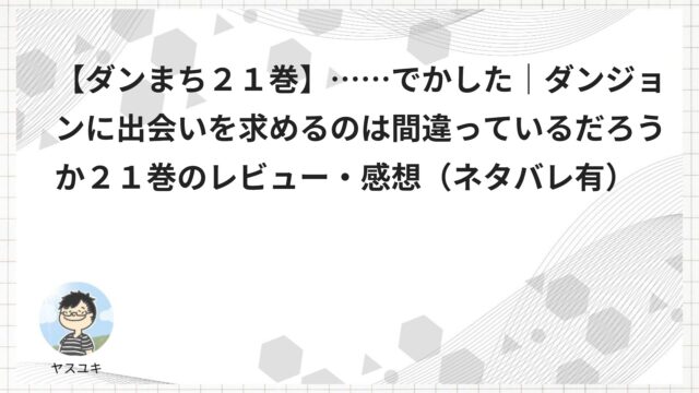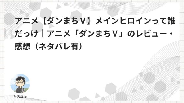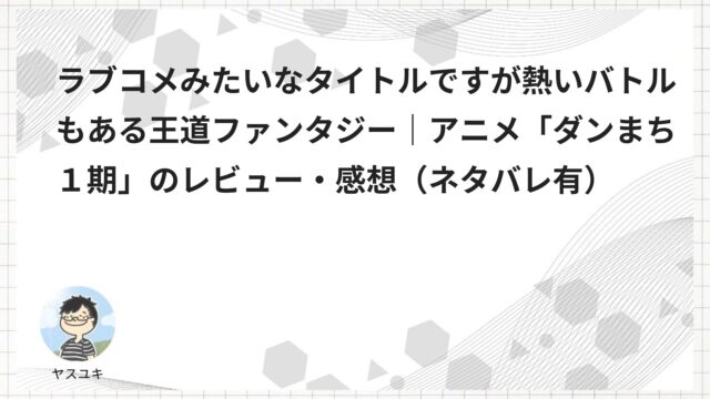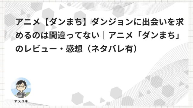 レビュー アニメ【ダンまち1期】ラブコメみたいなタイトルですが熱いバトルもある王道ファンタジー|アニメ「ダンまち1期」のレビュー・感想(ネタバレ有) 2025年11月5日 ヤスユキ Re:StilGo.